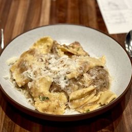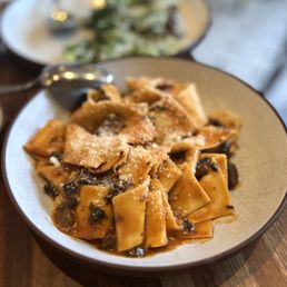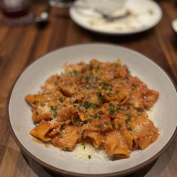The pasta is my favorite in the city! Also tried the caviar with the chips and dip and it was a great starter that I would recommend. Ordered an espresso martini which was not great but the mezcal cocktail was very well mixed. Service was also great although when we first arrived we were seated alllll the way in the back next to the wall and exit sign. Our reservation stated we were celebrating an anniversary so this was not what we were expecting. Thankfully my boyfriend talked to the host and she moved us over to the main room. I'd suggest changing out the lighting and not assigning reservations to the back table especially if a celebration is noted. Saving it for walk ins or large parties makes the most sense.